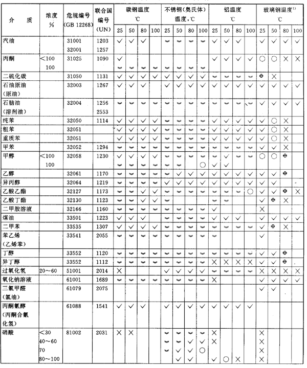 能用儲罐儲存和化學品船運輸的在溫度為37.8℃時,蒸汽壓力不超過2.8kPa/cm2的易燃液體、部分毒害品和感染性物品、腐蝕品。