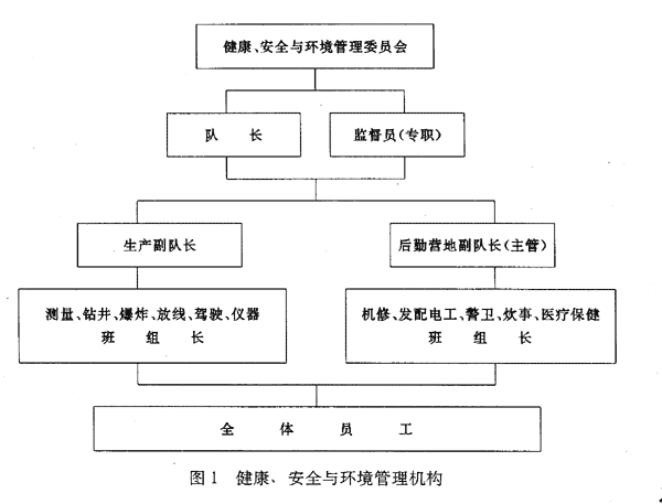 4.1.1.1 設立健康、安全與環境管理委員會(或管理領導小組),管理委員會由隊長(經理)、監督員、副隊長(副經理)、隊醫、班組長組成。隊長(經理)為主任,監督員為副主任。
