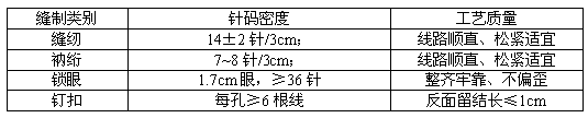 A2.2縫紉工藝要求按表A2規定
