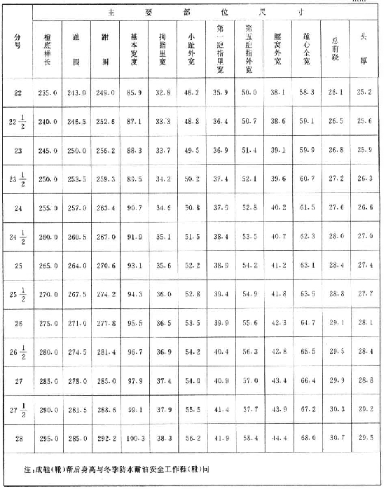 表1 冬季防水耐油工作鞋(靴)楦尺寸 mm