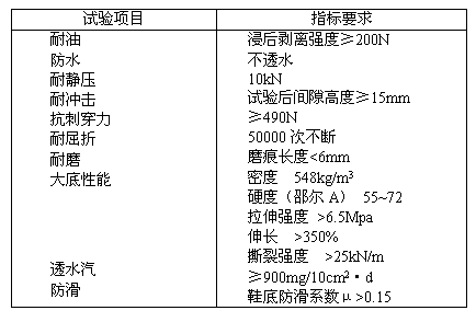 表4 防水耐油安全工作鞋(靴)性能指標