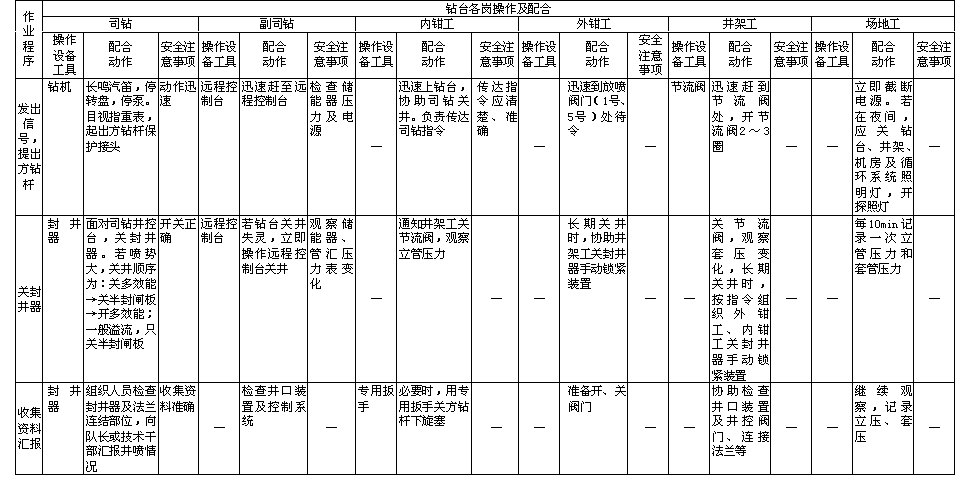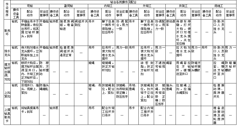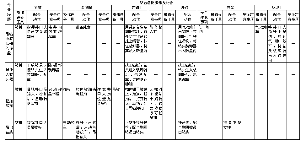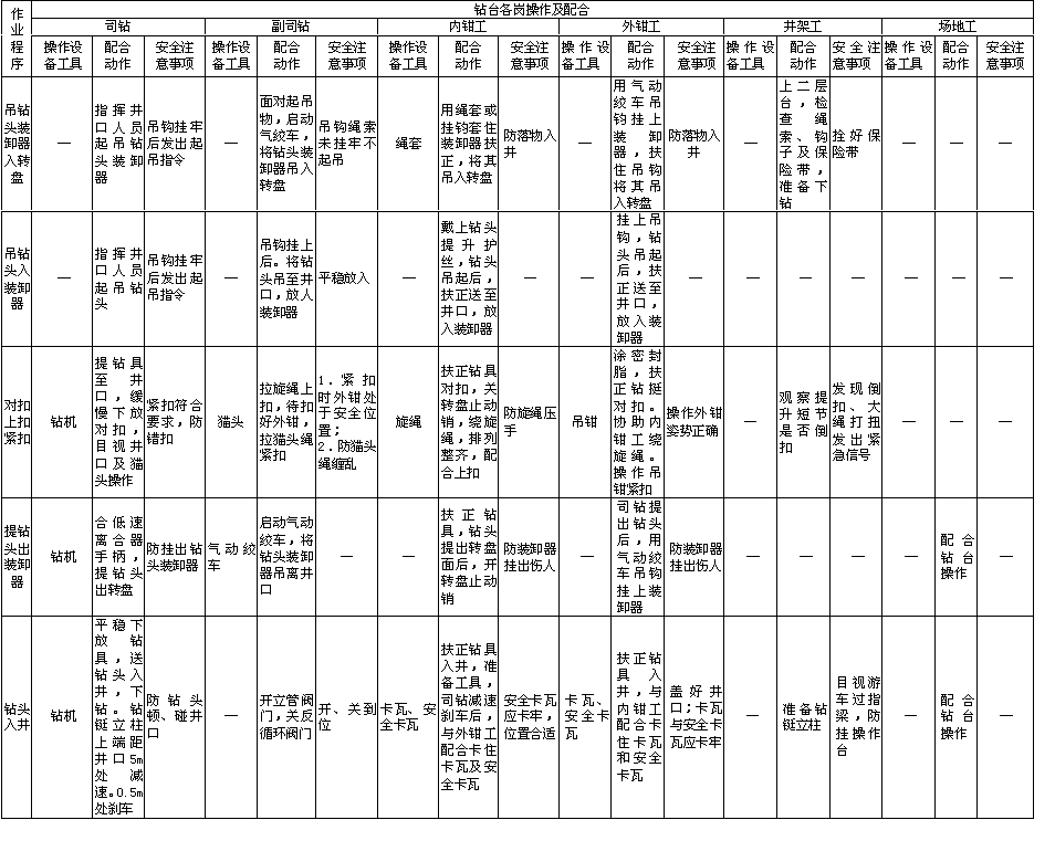 4.1.10 卸鉆頭作業(yè)(見表10)