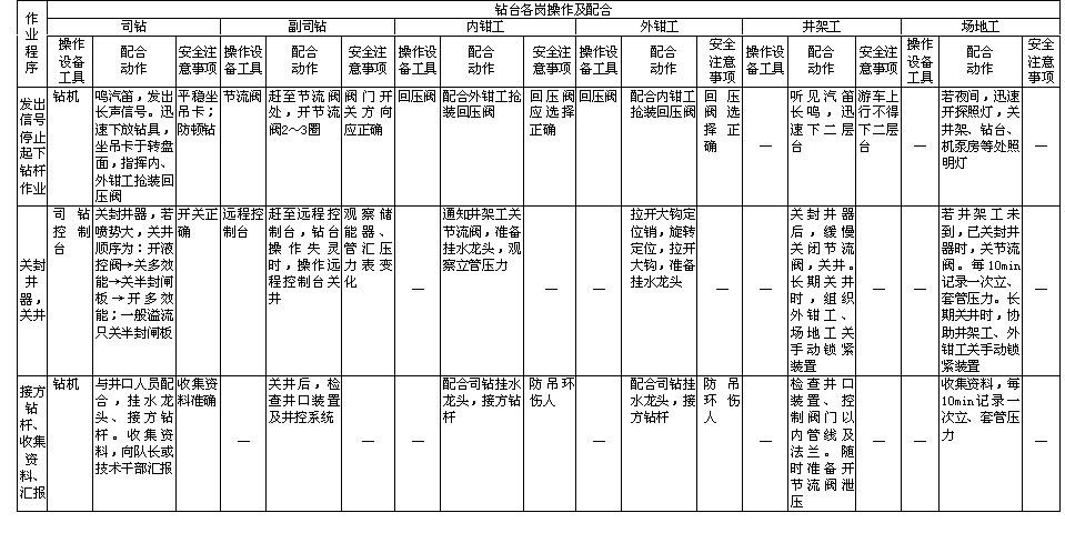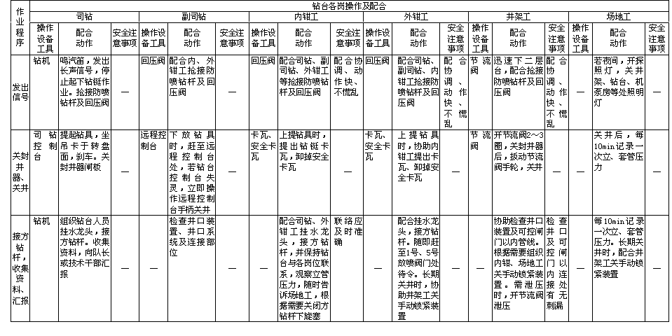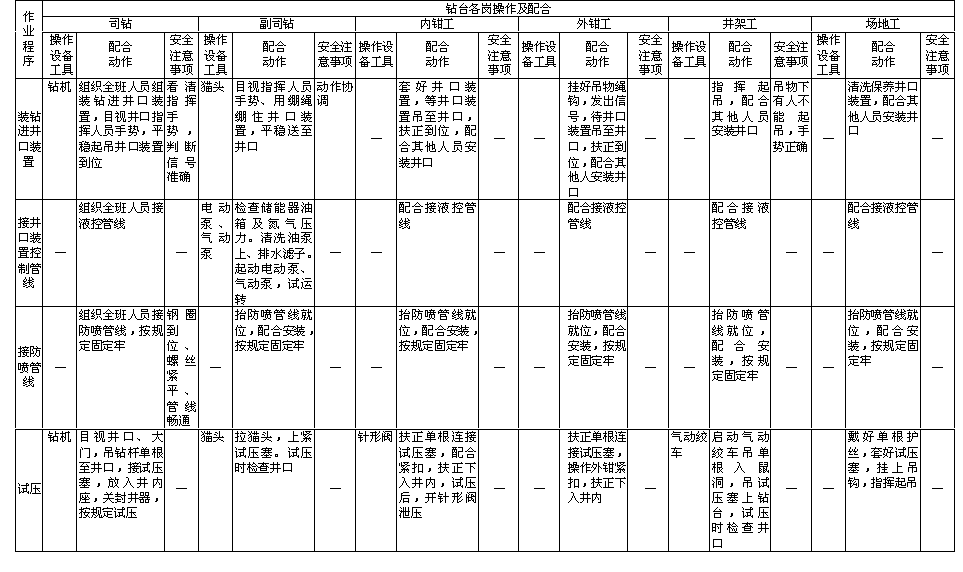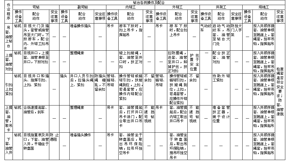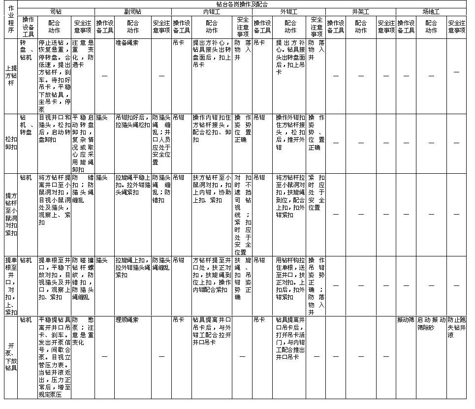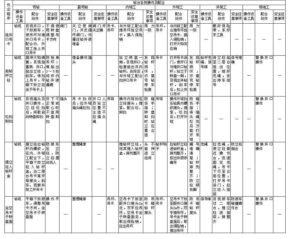 本標準規(guī)定了石油、天然氣鉆井主要作業(yè)崗位的操作及崗位之間配合的安全要求。本標準適用于陸上石油、天然氣鉆井作業(yè)。
