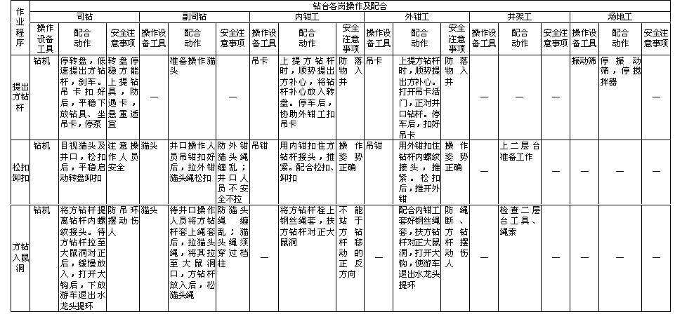4.3.1 鉆鼠洞作業(yè)(見表15)