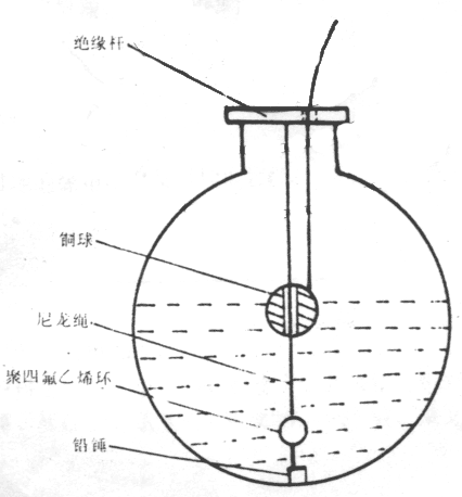 3.4.3 將穿過銅球中心直孔內的尼龍繩,在容器上、下部固定(見圖2)。