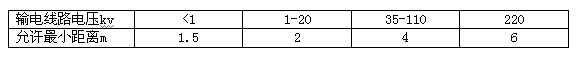 5.12拖拉繩及其他起重機索具、設備與輸電線路的安全距離應符合表1規定。必要時,應在輸電線路上端設置保護架。
