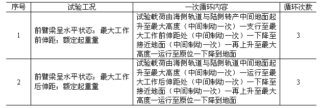 6.5.3 試驗時,吊具與試驗載荷分別位于最大工作前伸距、最大工作后伸距、海側與陸側軌道中間位置。