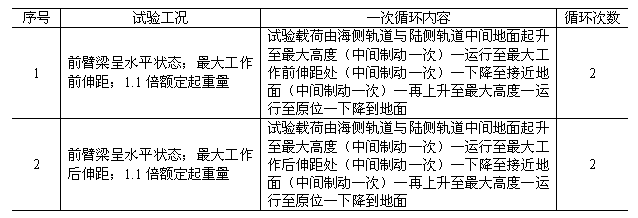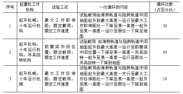 起重機必須完成不少于25000自然箱的起重作業工業性試驗。工業性試驗作業時間內包括可靠性試驗作業次數。
