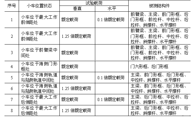 6.5.1 靜載試驗是驗證起重機承受1.25倍額定載荷時各零部件和結構件的承載能力。由于執行不同的技術標準和訂貨合同,最大試驗載荷可增至1.4倍額定載荷。