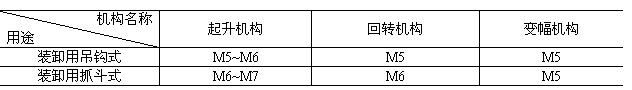 4.2.2 起重機的工作級別應符合表2的規定;機構工作級別應符合表3的規定。起重機的工作級別和機構工作級別詳見GB 3811。