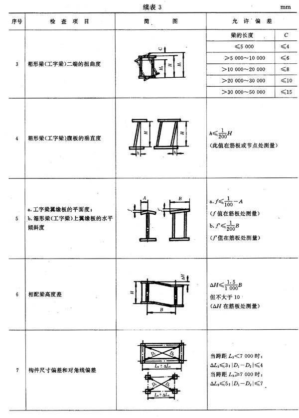 3.4.1 結構件制造的允許偏差應符合表3的規定。