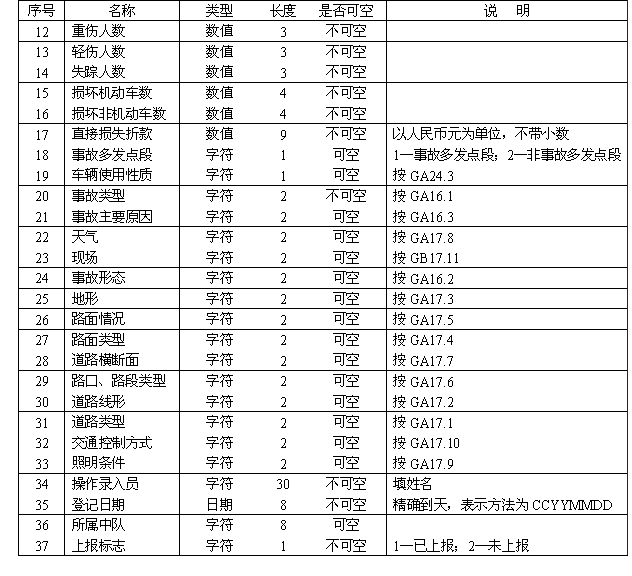 本部分適用于地市交通警察支隊與省(市、區)交通警察總隊之間、省(市、區)總隊與公安部之間的交換交通事故統計信息。