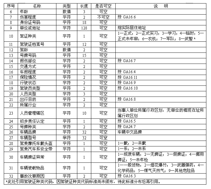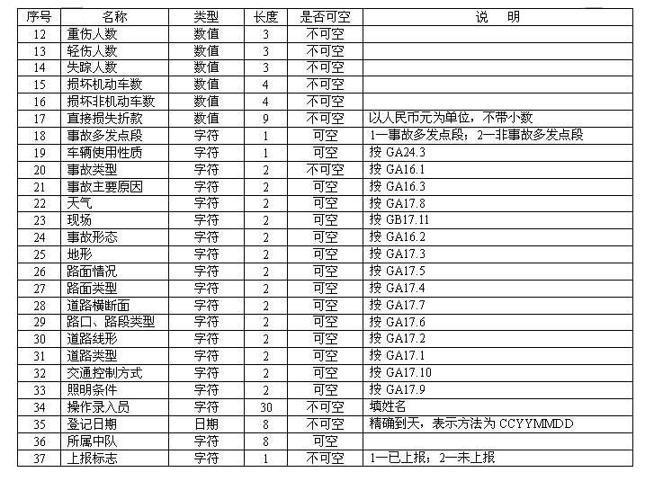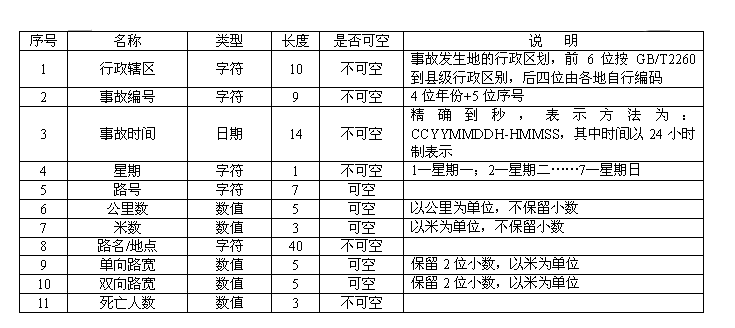 本部分規定了道路交通事故統計信息系統數據庫的基本信息。