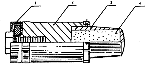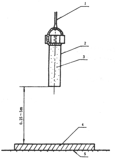 4.1.4.3 按圖1所示,將樣品管豎立在見證板上,在樣品管上端面放一片醋酸纖維片,再放上兩個鈍化黑索今藥柱,使之與樣品管保持同軸。在藥柱上面中心位置安裝雷管。