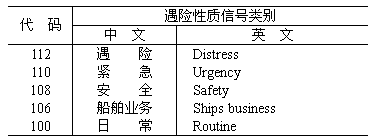 遇險(xiǎn)性質(zhì)信號(hào)見(jiàn)表E4。