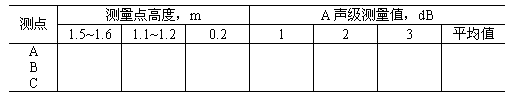 注:A,B,C三個測點均分別取距地板1.1~1.2m和1.5~1.6m高進行測量。