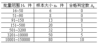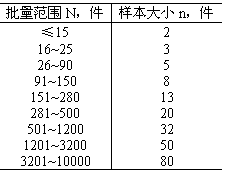 對于危險貨物運輸饈件出廠檢驗的批量范圍和樣本大小見表2。