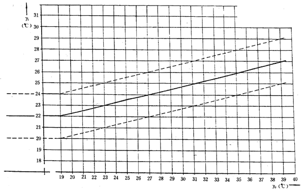 B2 裝有空調(diào)裝置的地鐵車輛,調(diào)節(jié)器處于中立位置時,客車溫度與空調(diào)裝置的關(guān)系曲線見圖B2。
