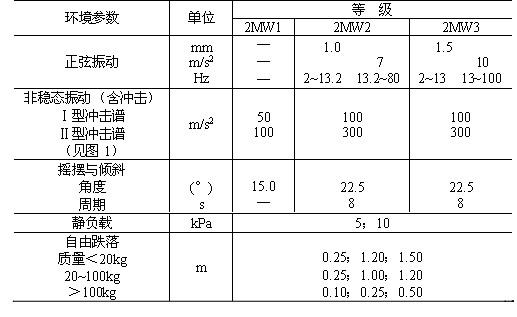 6.6 在特定情況下,2MW2和2MW3等級的Ⅰ型沖擊加速度可減至50m/s
