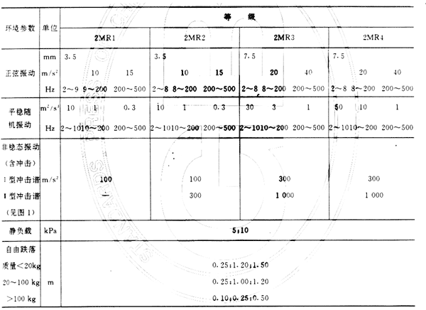 4.1 等級公路貨物運輸機械環境條件參數分為:正弦振動、平穩隨機振動、非穩態振動(含沖擊),自由跌落和靜負載五類。
