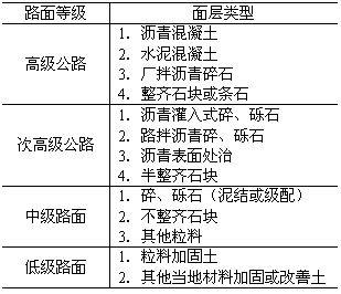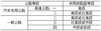 路面等級一般按表A-1的規定選用。