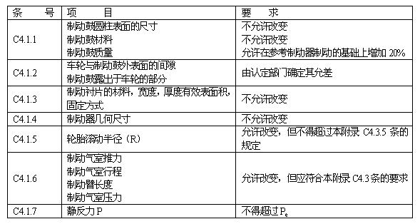 對認定的車輛,應檢驗其制動器技術參數是否符合表C1要求: