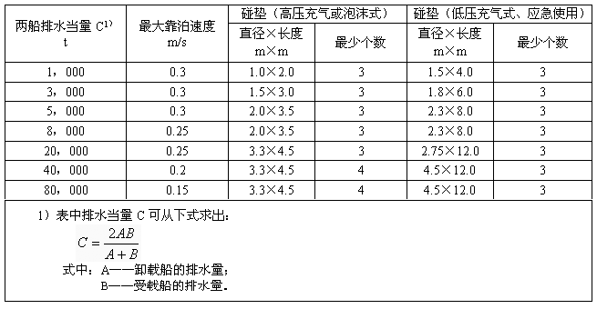 4.5.2 碰墊的位置除考慮船長、歧管位置及船體各部位強度外,應使靠泊時的碰撞力均勻地分散于兩船舶體,具體位置由雙方船長商定。
