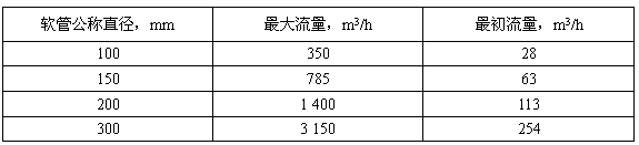 表1 輸貨軟管的最大和最初流量