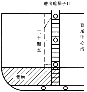 在前后進出艙梯子口(人孔)內,從梯子口到貨物之間的垂線方向按上、中、下安排三個檢測點。開艙前的檢測點位置如圖1。