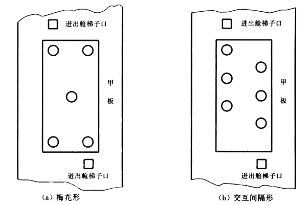 在艙內平面作業方向按圖2(a)或圖2(b)安排檢測點。各檢測點在垂直方向按上、中、下安排三個檢測點(同圖1)進行檢測。人員進入貨艙人孔時,仍按圖1的檢測點進行檢測。