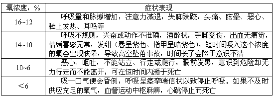 指由于吸入缺氧空氣而引起的癥狀[缺氧癥的主要癥狀見本標準附錄A(提示的)]。