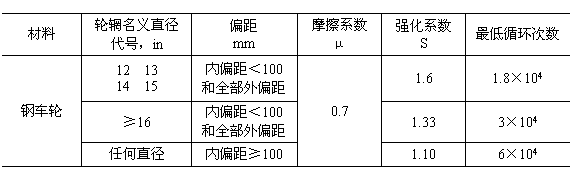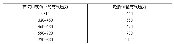 試驗載何和輪胎充氣壓力根據車輪而定。推薦試驗時輪胎氣壓如表2所示。