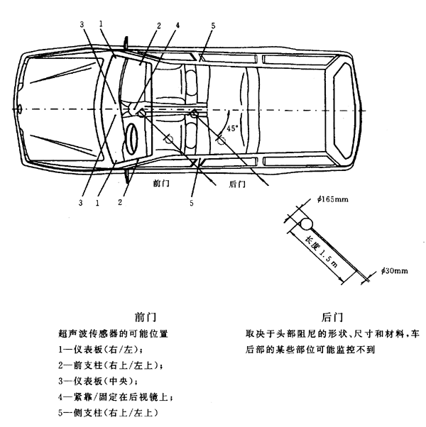 當直徑165mm±10mm的球穿過任一打開的車窗進入乘員廂內至少0.3m時(如圖A1所示),報警裝置應報警。