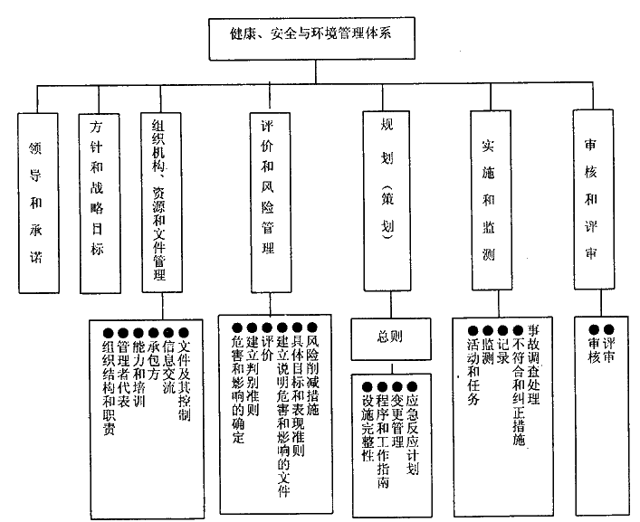 通過比較我們可以看出在上面三個大型石油集團(tuán)公司的HSE管理體系的結(jié)構(gòu)框架中,雖有用語和要素數(shù)目等方面有差別,但關(guān)鍵要素和基本內(nèi)容是相同的,并在結(jié)構(gòu)上具有以下幾個特點: