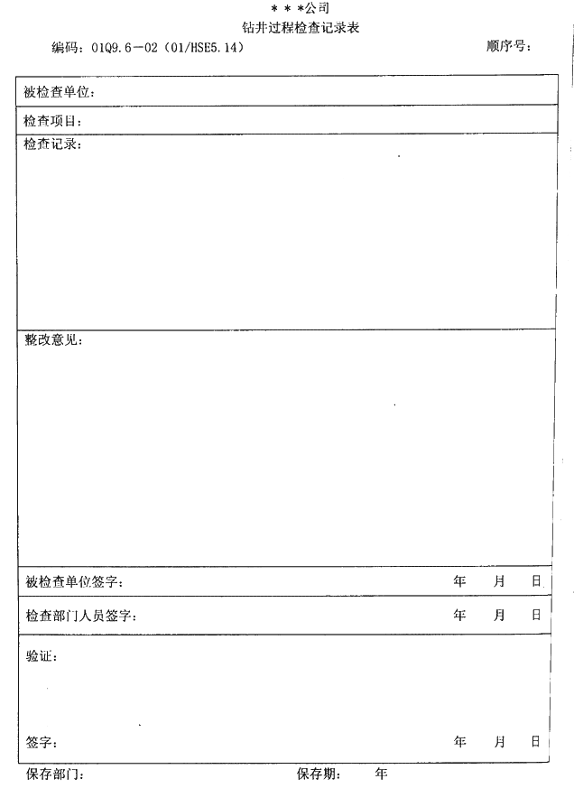 4.10 公司生產協調部組織對鉆井井控管理工作進行檢查和每年不少于五次對井控管理工作進行抽查,填寫“鉆井過程檢查記錄表”[01Q9.6-02(01HSE5.7-02)]。