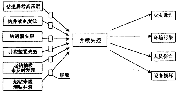 圖9 鉆井過程中井噴“失控”危害發生的關聯圖分析