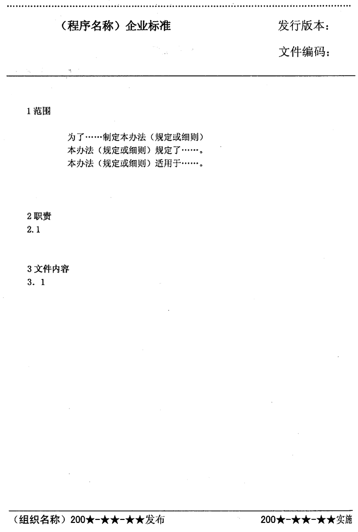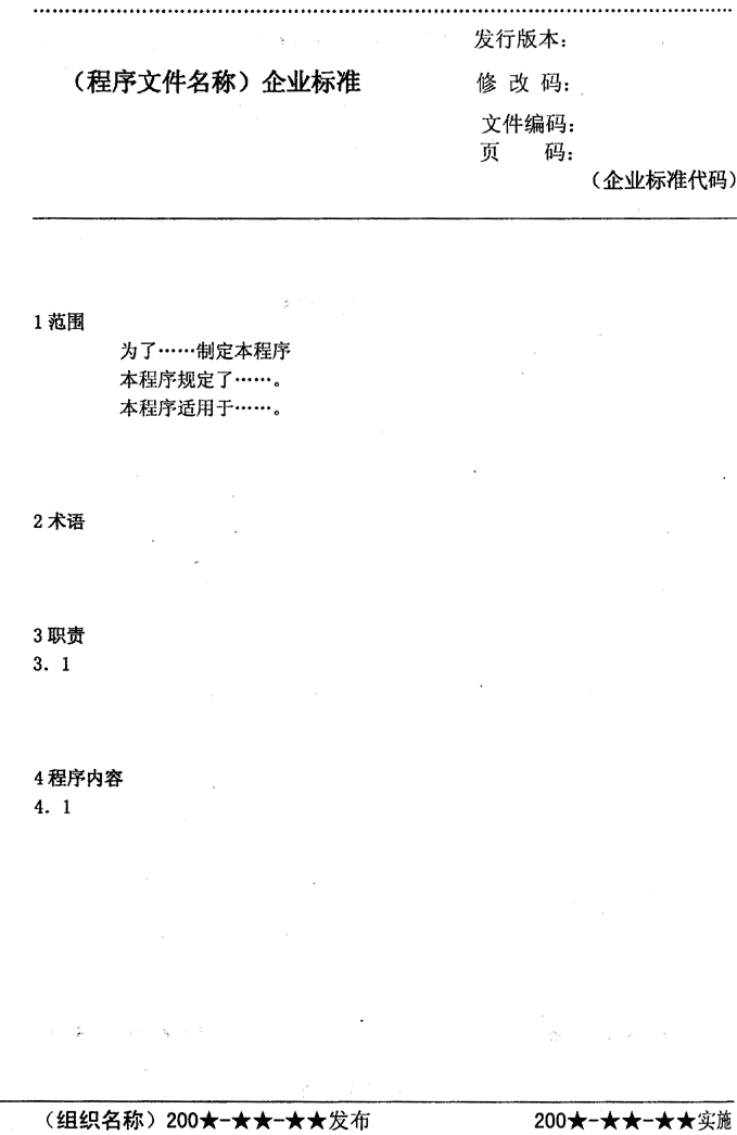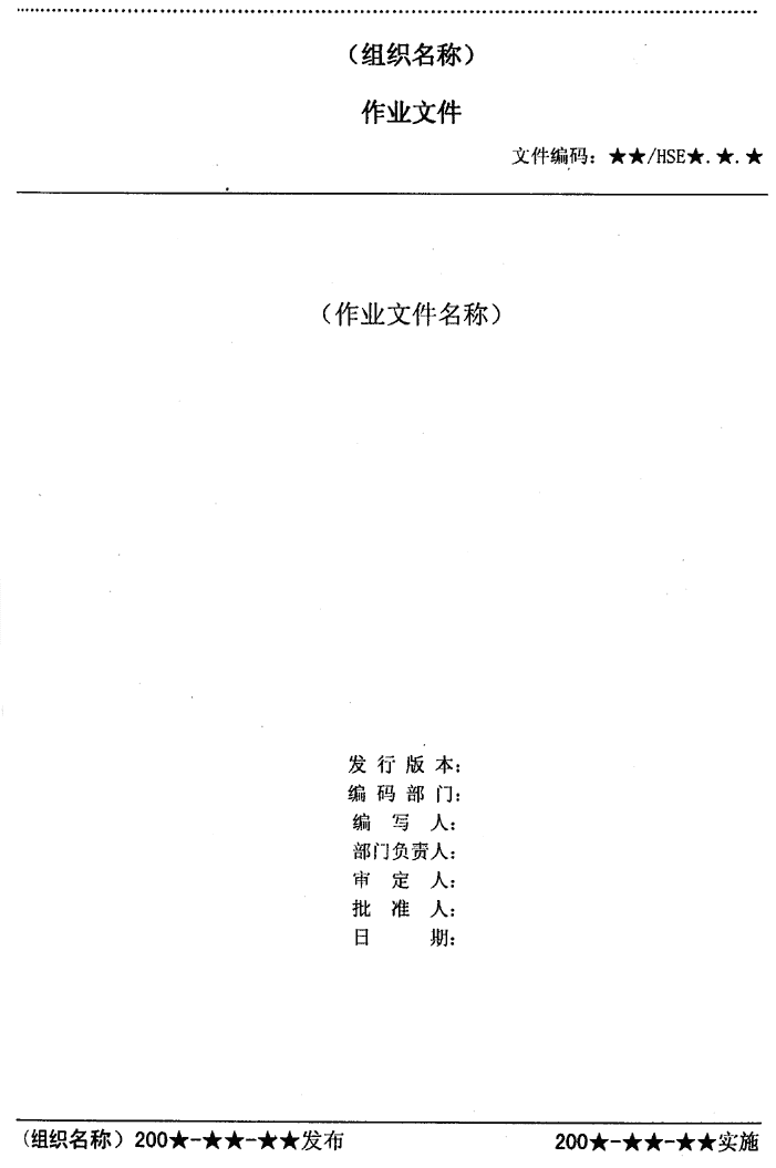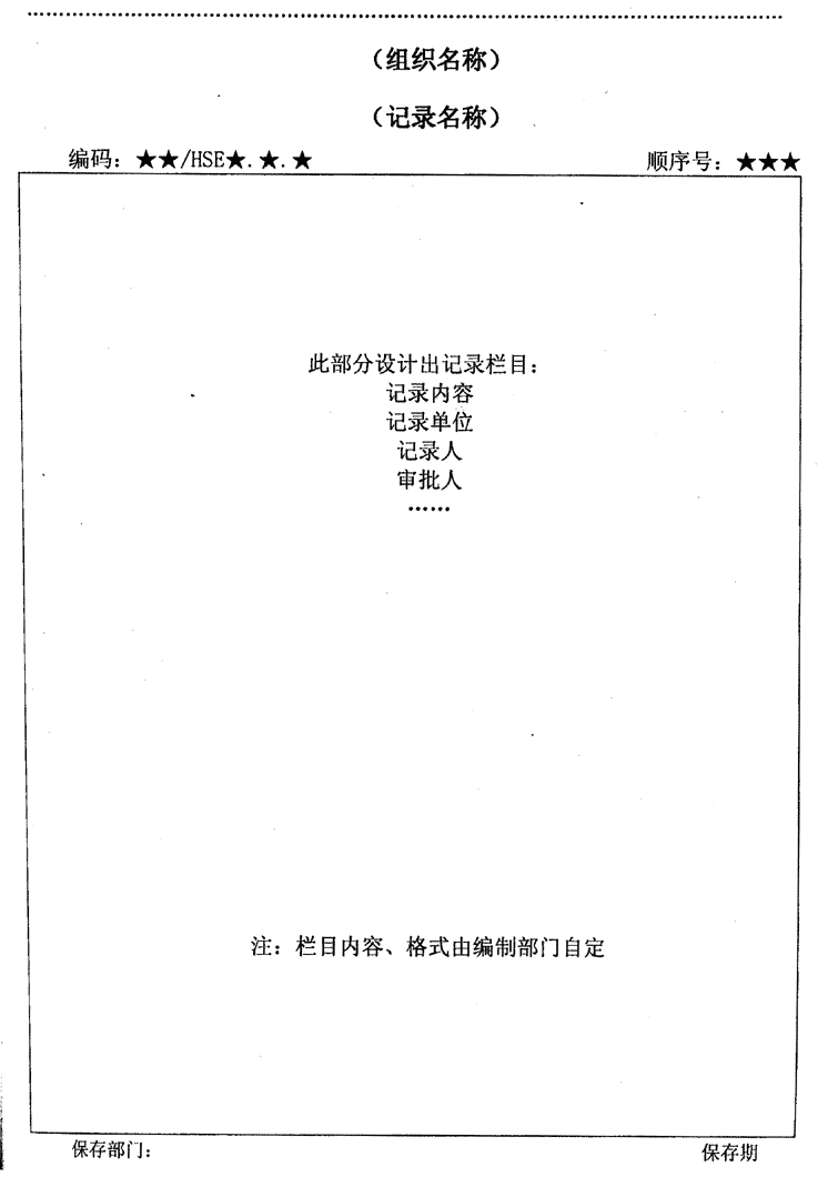 企業(yè)HSE管理手冊、程序文件的編制建議采用標準格式,基本要求應符合GB/T1.1《標準編寫的基本規(guī)定》,但文件編碼、頁碼等其他要求應滿足程序文件的特有規(guī)定。管理作業(yè)文件不采用標準形式編制。體系文件和記錄(專用票據除外)版面推薦均采用A4紙,如圖表較大可折疊裝訂。