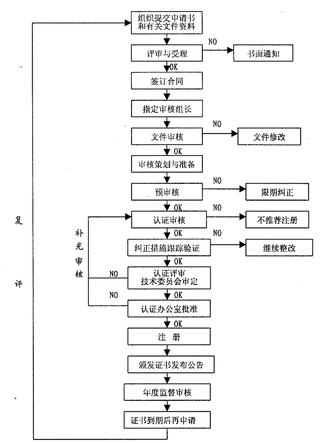 對審核組推薦注冊的企業,認證機構將企業認證評定后,報請技術委員會就是否能批準注冊進行審定,如審定不能通過,認證機構向其發書面通知書,將審定結論通知受審核方。