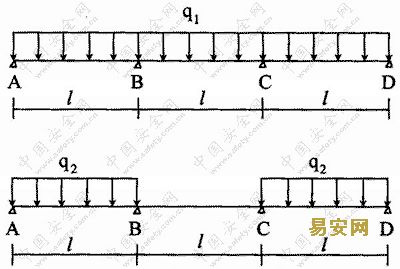 三跨連續梁中最大彎矩計算公式: