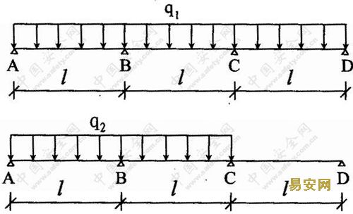 大橫桿按照三跨連續梁計算(見圖