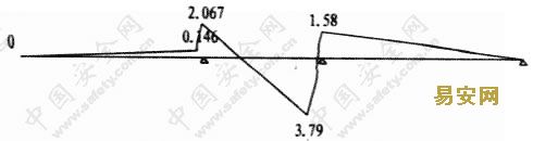 圖2 大橫桿計算荷載組合簡圖(支座最大彎矩)