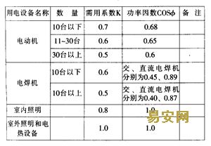 各用電設備組的最大負荷不同期系數,一般取