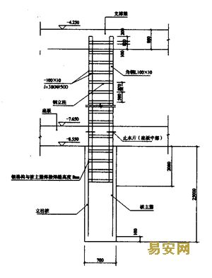 4.4.1在鋼構柱與底板混凝土中部交接處,焊好5mm厚鋼板止水片。