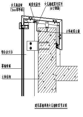 (如下圖:建筑幕墻頂部女兒墻防雷節點圖)