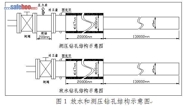 圖1 放水和測壓鉆孔結(jié)構(gòu)示意圖