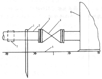 ???? 注:1——接地線;2——管線;3——石棉盲板;4——閘門;5——大地;6——油罐;7——?jiǎng)踊瘘c(diǎn)
