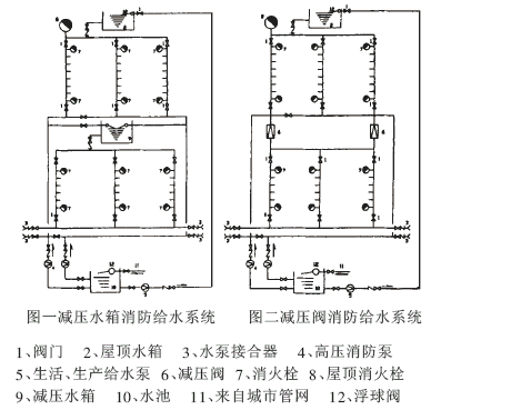 ?? 10 層及10層以上的住宅建筑和建筑高度為24m以上的其它民用和工業建筑的消防給水系統,稱為高層建筑室內消防給水系統,高層建筑消防原則上應立足于自救,因此,設計安裝一個方便、經濟、可靠的高層建筑室內消防給水系統就顯得尤為重要了。本文針對減壓箱、減壓閥兩種室內消防給水系統進行分析比較。