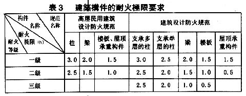??? 建筑物中承重鋼結構必需作防火保護。國家現行規范《建筑設計防火規范》和《高層民用建筑設計防火規范》中對建筑物的耐火等級及相應的建筑構件應達到的的耐火極限,作了具體規定,詳見表3。