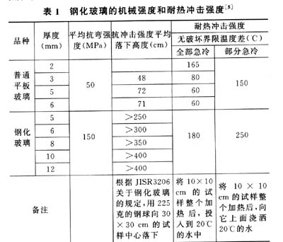 ??? 試驗也證明,平板玻璃經鋼化強化后,其抗急冷急熱性大為提高,見下表1。