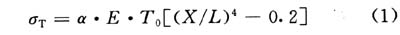 ??? 式中:α是膨脹系數,E是彈性模量,T0是最大溫差值,L是玻璃板的半長,X是板中央沿軸線任意一點的位置。
